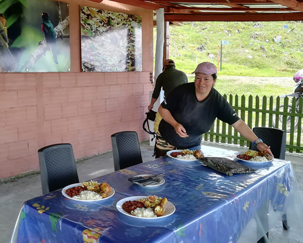 En Sendero La Herrería pensamos en todo para que tu experiencia sea completa: desde la llegada en transporte seguro, hasta la comida casera que reconforta después de la caminata, y la guianza local bilingüe que te conecta con las aves y la montaña.